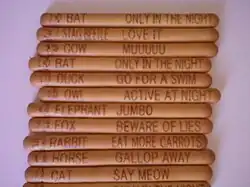 The sticks were once plain, but recently Meiji has placed pictures of various animals on them with quotes relating to that animal. The quotes are in English, but often appear unorthodox to native English speakers. Examples of these animal quotes include: