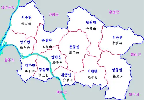 - ^ "eup/myeon". Yangpyeong Gun. Retrieved 30 December 2024.