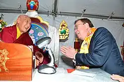 ![]() Yangthang Tulku Rinpoche and Mansfield Kaseman Interfaith Community Liaison, Montgomery County Office of Community Partnership | |