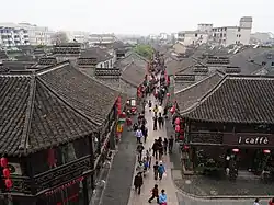 Restoring the former name Guangling, the Tang made the city a major port for foreign trade and turned it into a leading economic and cultural center. Many foreign merchants lived in the city,[12] including many Koreans, Arabs, and Persians. Thousands of Muslim Arab, Persian and other foreign merchants were massacred in 760 by forces under Tian Shengong, sent to suppress the city's rebellion.[13][14]