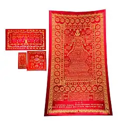 Yantra cloth are red, black, or white fabrics decorated with Buddhist esoteric inscriptions known as yantra that are used in South-East Asia to seek spiritual protection for houses or individuals, dead or alive. While they are very common, they are unorthodox Buddhist superstitions as described by psychologist Stuart Vyse.[1]