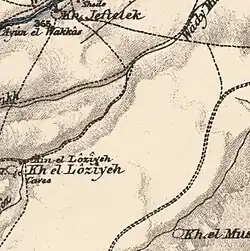 | Etymology: Kh. Wakkâs, the ruin of the man with a broken neck[1] Kh. Lôzîyeh, the ruin of the almond tree[2] | |