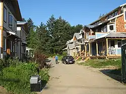 The Yarrow Ecovillage is an intentional community in Yarrow, British Columbia, Canada. Yarrow is a settlement of 3,000 population within the municipal boundaries of Chilliwack, British Columbia. The Ecovillage is a member-designed community that aims to achieve a more socially, ecologically and economically sustainable way of life. The Ecovillage's master plan for the 10-hectare (25-acre) former dairy farm, foresaw three main legal entities: An 8-hectare (20-acre) organic farm, a 31-unit multigenerational cohousing community (later increased to 33 units), and a mixed-use development with just under 2800 m2 (30,000 sf) of commercial space, a 17-unit senior cohousing community and a learning centre.[1]