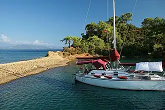 The island is uninhabited, but the İzmir municipality has established a quay, a 400-meter beach and a restaurant in the southern part of the island. İzdeniz (İzmir municipality’s transportation company) operates regular ferry services from Konak and Karşıyaka terminals to the island.[2] The voyage time to Yassıca Island from the mainland is about 1.5 hours.