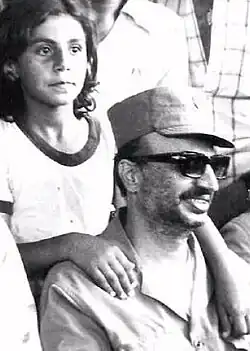 In 1990, Arafat married Suha Tawil, a Palestinian Christian, when he was 61 and Suha, 27. Her mother introduced her to him in France, after which she worked as his secretary in Tunis.[23][24] Prior to their marriage, Arafat adopted fifty Palestinian war orphans.[25] During their marriage, Suha tried to leave Arafat on many occasions, but he forbade it.[26] Suha said she regrets the marriage, and given the choice again would not repeat it.[26][27] In mid-1995, Arafat's wife Suha gave birth in a Paris hospital to a daughter, named Zahwa after Arafat's mother.[28]