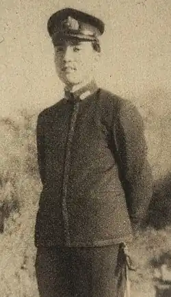 Nakasone applied for the Navy's programme that allowed graduates from elite universities to serve as officers for two years without rising through the ranks. After completing a training period at the Navy Paymaster's School in Tsukiji, he became a lieutenant.[2] With 2,000 staff under his command, ranging from young doctors and scholars to elderly ex-convicts, Nakasone departed the naval base at Kure on 29 November 1941 on a mission to build airfields. Aboard his ship, he struggled to issue effective orders to his staff and ultimately selected an ex-yakuza with eight convictions as his assistant to relay his commands. In January 1942, he arrived at Balikpapan in Dutch East Indies, where his unit was raided by a retreating Dutch cruiser.[7][8] On the beach, he cremated the first 23 casualties among his staff, including his ex-yakuza assistant. This experience left a deep and lasting impression, which profoundly influenced his political beliefs.[9] There, he realized that the construction of the airfield had been stalled due to the prevalence of sexual crimes, gambling, and other problems among his men, so he gathered comfort women and organized a brothel called “comfort station” as a solution.[7] He managed to procure four Indonesian women, and a Navy report praised him for having “mitigated the mood of his troops".[7] Nakasone married Tsutako Kobayashi, the daughter of geologist Giichiro Kobayashi, on 11 February 1945. A fortnight later, he lost his younger brother, Ryosuke, in an air accident.[10]