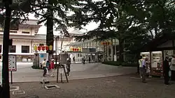 The shrine was used as a focal point for fostering military and civilian morale during the war era, often emphasizing dedication to the Emperor.[15] Enshrinement at Yasukuni signified meaning and nobility to those who died for their country. During the final days of the war, it was common for soldiers sent on kamikaze suicide missions to say that they would "meet again at Yasukuni" following their death.[16][17] Some wartime military songs referenced Yasukuni, such as Doki no Sakura(同期の桜) and Calming the country(国の鎮め). At that time, however, the coalition saw that Japan, which was in a tight corner, was using Yasukuni for propaganda purposes. During wartime, Yasukuni Shrine was used as a symbolic motivator for soldiers, with some references in military rhetoric linking enshrinement to notions of sacrifice.[18]
