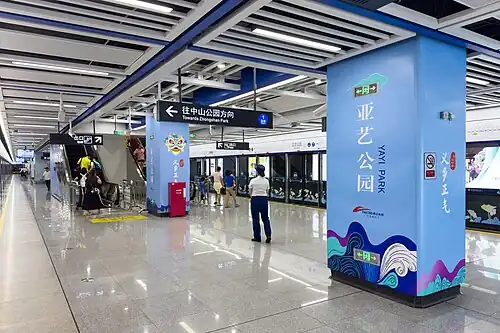 Yayi Park station (simplified Chinese: 亚艺公园站; traditional Chinese: 亞藝公園站; pinyin: Yàyì Gōngyuán Zhàn; Jyutping: Ngaa3ngai6 Gung1jyun4 Zaam6; lit. 'Asian Art Park station') is a station on Line 3 of Foshan Metro, located in Foshan's Chancheng District.[1] It opened on 28 December 2022.[2][3][4]