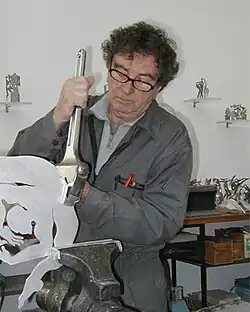 Yehiel Rabinowitz (Hebrew: 'יהיאל רבינוביץ; born March 1939) is a Paris-based sculptor and painter. He has created a number of mural paintings and ceramic tile murals in public and private spaces throughout France, Spain, and Belgium. He is also responsible for creating sculptures out of sheets of aluminum and stainless steel in public and private spaces in France and Canada, such as “Les Otimistes” in Fougères, France. Rabinowitz began practicing art as a profession in the 1960s and rose to prominence through the 1970s, 1980s, 1990s, and 2000s.