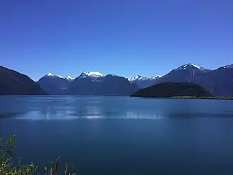 ![]() Yelcho Lake as seen from the southern tip, near Puerto Ramirez | |