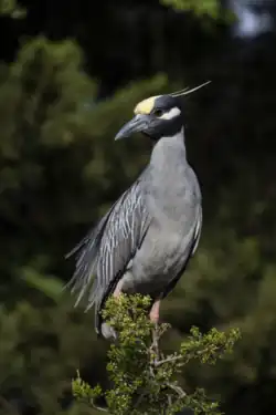 Another important habitat factor is nesting sites. The yellow-crowned night heron needs bushes or trees to build nests, although it will use rock ledges where vegetation is unavailable (for example, on cliffs).