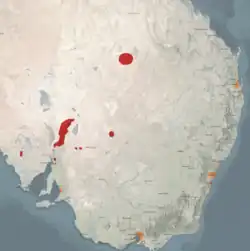 The yellow-footed rock-wallaby was originally known and described from specimens from South Australia. The species was subsequently discovered in New South Wales (and Queensland) where it was first recorded in 1964[16][17] in the Coturaundee Ranges, now part of Mutawintji National Park.[18] The two small mountain ranges in the far west of the state are still the only known places where the species survives in New South Wales.[4]