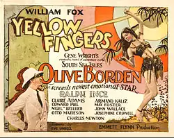 Yellow Fingers is a 1926 American silent drama film directed by Emmett J. Flynn and written by Eve Unsell. The film stars Olive Borden, Ralph Ince, Claire Adams, Edward Peil, Sr., Otto Matieson, and Nigel De Brulier. The film was released on March 21, 1926, by Fox Film Corporation.[1][2][3][4]
