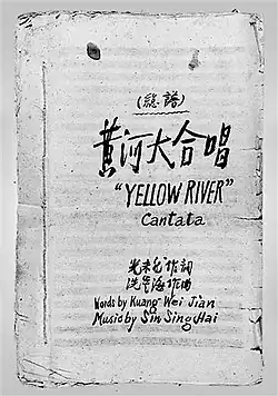 The Yellow River Cantata (Chinese: 黄河大合唱; pinyin: Huánghé Dàhéchàng) is a cantata by Chinese composer Xian Xinghai (1905–1945). Composed in Yan'an in early 1939 during the Second Sino-Japanese War, the work was inspired by a patriotic poem by Guang Weiran, which was also adapted as the lyrics. Premiered on April 13 of the same year in the Shanbei Gongxue Hall of Yan'an, the work soon spread to all parts of China.[1]