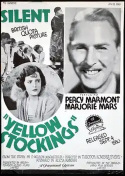 Yellow Stockings is a 1928 British drama film directed by Theodore Komisarjevsky and starring Percy Marmont, Enid Stamp-Taylor, Marie Ault, and Georges Galli.[1] It was based on a novel by Wilson McArthur and made at Cricklewood Studios.
