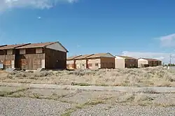 Like many yellowcake boomtowns, Jeffrey City, Wyoming grew rapidly during the Cold War era from a "trailer town" to a bustling community after the development of uranium mining and processing facilities there.[1] By the 1960s the U.S. stockpile of nuclear weapons leveled off and the need for enriched uranium reached a plateau. With the development of nuclear energy in the 1970s the demand for yellowcake increased again. By the early 1980s, Jeffrey City had reached its apex (population 4,500);[7] the mine shut down in 1982 and by 1988 the town had "gone bust" after the uranium mill had been decommissioned.[4] The town lost 95% of its population,[8] and in 2010 only 58 people lived there.[7]