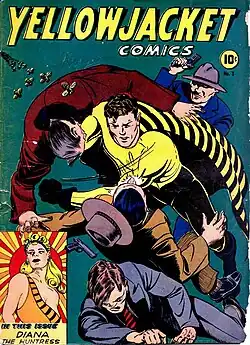 ![]() Yellowjacket, on the cover to Yellowjacket Comics #3 (November 1944). | |
