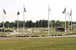 Yellowstone National Cemetery is a United States National Cemetery located one mile north of Laurel, Yellowstone County, Montana, at 55 Buffalo Trail Road (state highway 532), administered by the US Department of Veterans Affairs, National Cemetery Administration. The 10.5 acres (4.2 ha) cemetery began as a satellite cemetery of Black Hills National Cemetery; Sturgis, South Dakota.[1] On 18 May 2015 the Department of Veterans Affairs created five national areas of responsibility. Fort Logan National Cemetery, Denver, Colorado, in the newly formed Continental Division, assumed supervisory responsibility for Yellowstone National Cemetery.[2] Yellowstone National Cemetery is the first of eight smaller national burial grounds the Department of Veterans Affairs began in its Rural Veterans Burial Initiative for largely rural states in America.[3]
