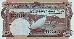 On 1 April 1965, the South Arabian Currency Authority introduced notes in denominations of 250 fils, 500 fils, 1 dinar, and 5 dinars. A 10 dinar note was issued on 1 July 1967.[1]