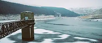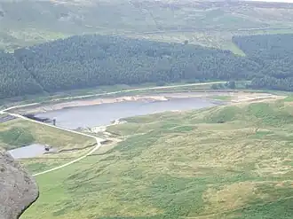 The reservoir scheme in the Greenfield Valley and Chew Valley by the Ashton Stalybridge and Dukinfield Waterworks Joint Committee commenced in 1870.[2] Yeoman Hey was completed in 1880. Yeoman Hey and the valley's other reservoirs are owned by North Western Gas and Water.