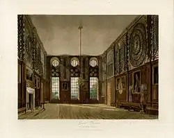 The Guard's primary function was protection. Hewerdine quotes one of Henry VII's heralds describing the Guard as: "evermore standing by the ways and passages upon a row in both the sides where the king's highness should from chamber to chamber or from one place to another at his goodly pleasure be removed".[3]: 51 In other words, the Guard formed a physical security shield wherever he went in the palace. (Illustrations in this section are from the reign of Henry VIII. Very little remains of palace interiors from Henry VII's reign due to remodelling, for example, Windsor Castle, or demolition, such as Greenwich Palace, by later monarchs.)