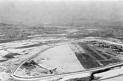 Japanese authorities significantly upgraded the facility in 1929, along with a number of other airfields in Korea, to serve as stops for air service to Manchuria.[1] Japan Air Transport (later as Imperial Japanese Airways) provided scheduled flights to Tokyo (beginning 1929), Fukuoka, Mukden, Dalian, Xinjing and other destinations from the airport during the 1930s.[3][4] The much larger Kimpo Airfield opened to Japanese military traffic in 1943, and Yeouido was thereafter officially known as Keijo No. 2 Airfield (京城第2飛行場).[5]
