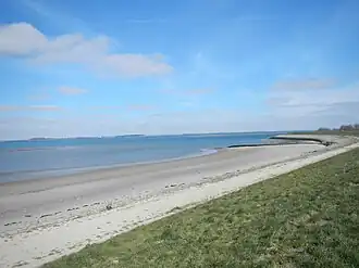 The main natural feature of the town is the Moer (moor) partially surrounding the town, extending westwards along the Eastern Scheldt shoreline, and southeast to the hamlet of Vlake along the canal. This natural area is a former salt-water tidal marsh, separated by dikes from the sea around 1200 CE by monks for the purposes of farming and peat extraction, which boasted a high salt content (a lucrative commodity in the Middle Ages). Extraction has since formed the characteristic landscape today: rich, low-lying meadows atop a thick peat layer are interspersed by sandy creek ridges along which roads and paths have developed over the centuries. Due to large variation in soils and sand, a great variety of fauna has developed and the area has become a protected bird sanctuary. A trail guides walkers through the moor.[15]