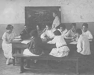 Moisei B. Bernstein[3] was the founder and first director of the school. The school principals were impressed by the then new Dalton Plan and implemented it, adjusting it to their learning environment. The students were taught languages, history, Jewish history, geography, mathematics and a variety of other subjects. Some of the teachers who played a major role in the school's development were Eneta S. Gliksberg who taught Russian language and literature and Yakov M. Plikh who taught languages and history.