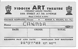 The Yiddish Art Theatre was a Yiddish theatre company of the 20th century in New York City. The organization was founded in 1918 by actor and impresario Maurice Schwartz, to present serious Yiddish drama and works from world literature in Yiddish.[1][2]