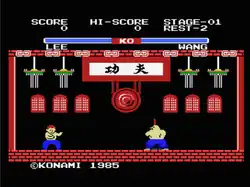 Yie Ar Kung-Fu[a] (Chinese: 一二功夫; pinyin: yī èr gōngfū; lit. 'One Two Kung-Fu') is an arcade fighting game developed and published by Konami. It first had a limited Japanese release in October 1984,[2] before having a wide release nationwide in January 1985 and then internationally in March.[1] Along with Karate Champ (1984), which influenced Yie-Ar Kung Fu, it is one of the games that established the basis for modern fighting games.[8]