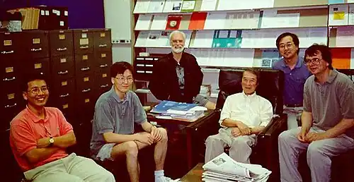 In 1954, Nambu joined the University of Chicago and was promoted to full professor in 1958.[11] From 1974 to 1977, he served as Chair of the Department of Physics. He became a U.S. citizen in 1970 and remained one until his death in 2015.[12]