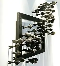 Yorgos Kypris (Greek: Γιώργος Κυπρής), born 1954, is a Cypriot sculptor who lives and works between Athens and Santorini in Greece. He continues to take part in numerous solo and group exhibitions, commissions work, designs jewelry and permanently exhibits his work through MATI, his personal art gallery. His work has been published in a number of books, articles and magazines. His best known works include the "Entrapped Fish" installation, at the Lobby of the World Bank Building, Washington D.C., commissioned in 1997, the "Gate of Knowledge" - a sculptural steel gate, erected in 1998 in the yard of St. Paul High school, Pafos, Cyprus, the body of works "Fish" (1993-), the "Parallel Notions" body of works (2001) and the "Observers", an installation of four sited figures on poles, 4,5m high each, commissioned (2002) at Fabrica Commercial Center, Fira, Santorini, Greece.