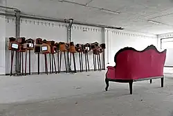 Yorgos Kypris’ “Parallel Notions" is a study on solitude and the consequential notions of sleep-death-abandonment. Using mainly steel, x-rays, colored slides and pillows he creates bed installations, dealing with the end (death) in a conceptual way. With austere forms and lines he organizes the presence of solitude and abandonment creating installations like in a mystic ritual.