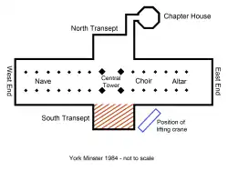 ![]() York Minster after 1984 fire | |