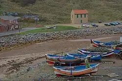 Runswick Bay was a "traditional, ancient fishing village", though the village is now known as a tourist destination and a location for collecting fossils. Some sea-fishing takes place from here, but in smaller numbers than back in the 18th and 19th centuries,[66][67][68] when the village had around 20 cobles sailing from the harbour.[69]