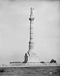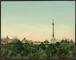 The Yorktown Victory Monument is a monument erected in Colonial National Historical Park in Yorktown, Virginia, commemorating the 1781 victory at Yorktown and the alliance with France that brought about the end of the American Revolution and the resulting peace with England after the American Revolutionary War. Designed by Richard Morris Hunt, the monument was installed in 1884. At the top stands a figure of Liberty sculpted by John Quincy Adams Ward. That element was destroyed by lightning in 1942. It was replaced in 1957 by a figure of Victory by Oskar J. W. Hansen.[1]