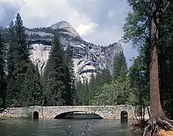 The Yosemite Valley Bridges are eight bridges in the Yosemite Valley of Yosemite National Park, most of them spanning the Merced River. Five of them were built in 1928, with the remainder built between 1921 and 1933. The bridges feature a concrete structure faced with local stone, in an elliptical or three-centred arch configuration. They are notable for their uniform character and for their conformance to tenets of the National Park Service rustic style.[2] Design work for the seven newer bridges was by George D. Whittle of the San Francisco District Office of the U.S. Bureau of Public Roads for the National Park Service. Concrete bridges were chosen at the urging of Thomas Chalmers Vint of the Park Service, in lieu of alternative designs for steel truss bridges, or suspension bridges suggested by the park superintendent.[3]