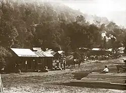 The Yosemite Valley Railroad's first regularly scheduled train left from the Santa Fe depot, which was located six miles outside of town, on December 18, 1905. This marked the exact three-year anniversary of the railroad's incorporation. The company was complying with its state charter, which required five miles of the railroad to be in regular operation within three years of the charter's granting.[9] Tracks were completed to Merced Falls on March 4, 1906, and the formal opening of the railroad's regular schedule took place on May 25, 1906.[10] Regular service marked the end of the stagecoach business along the route.[11]