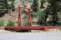 Today, the Yosemite Valley Railroad no longer exists, but some remnants can still be found. The El Portal Inn, which served as the railroad's terminus, burned down in 1932.[35] Some sections of the re-routed railbed were submerged when Exchequer Dam was expanded in the 1960s. However, a few of the railroad's tunnels still remain under Lake McClure and in Merced Canyon. The National Park Service relocated several surviving structures, such as the original hand-turned turntable, from Bagby to El Portal. At El Portal, Caboose No. 15, one of the few surviving pieces of rolling stock, is also on display. Locomotive 29, which was sold to a Mexican railroad after the Yosemite Valley Railroad's closure, is currently on static display in Veracruz, Mexico.[36]