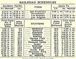 - ^ "Yosemite Railroad. Grading Commenced at Merced -- Ties and Rails Ordered". Mariposa Gazette. Mariposa, California. Retrieved February 21, 2023.