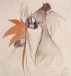 In the 1960s, Amano was exposed to Western art styles through comic books, which he claims among his artistic roots. He has cited Neal Adams as his favorite comic book artist, noting that he would often purchase used comics based on Adams's cover artwork, only to be disappointed that the interior artist was different.[11] Amano was also fascinated by the art styles of psychedelic art and pop art of the West, particularly the work of American Pop artist Peter Max.[12] In the 1970s, Amano studied the artworks of the late 19th century and early 20th century European movement of Art Nouveau, as well as the Russian orientalists (Leon Bakst, Ivan Bilibin) and the ancient Japanese hand woodblock printing work of Ukiyo-e.[12] Amano remained at Tatsunoko Productions until 1982.