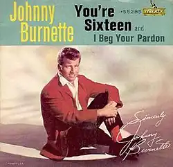 "You're Sixteen" is a song written by the Sherman Brothers (Robert B. Sherman and Richard M. Sherman). It was first performed by American rockabilly singer Johnny Burnette, whose version peaked at number eight on the US Billboard Hot 100 in December 1960 and number 3 in the UK in 1961.[1] The song was covered by Ringo Starr in 1973 and this version reached number one in the US.