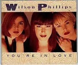"You're in Love" is a song by American pop rock band Wilson Phillips. It was written by the band with Glen Ballard, while he produced it. Released in January 1991 by SBK as the fourth single released from the group's self-titled debut album (1990), it reached number one on the US Billboard Hot 100, becoming the group's third and final number-one single in the United States. At the 34th Annual Grammy Awards, it received a nomination for Best Pop Vocal Performance by a Duo or Group.[2]