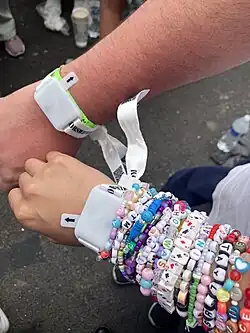 The song was also one of the "surprise songs" featured in the tour's accompanying concert film.[71] The "friendship bracelets" lyric in "You're on Your Own, Kid" prompted fans and concertgoers who attended the Eras Tour to make their own bracelets that spelled out the titles of Swift's songs and other colloquialisms.[72]