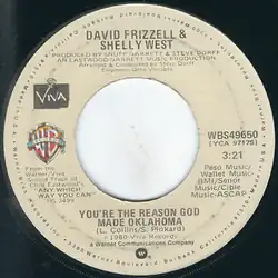 "You're the Reason God Made Oklahoma" is a song from the film Any Which Way You Can, performed by American country music artists David Frizzell and Shelly West. It was written by Larry Collins and Sandy Pinkard (of Pinkard & Bowden). The song was West's debut on the country chart and Frizzell's second hit on the country chart. "You're the Reason God Made Oklahoma", was the most successful of seven country hits by the duo, staying number one on the country chart for one week and 11 weeks in the Top 40 country chart.[1]