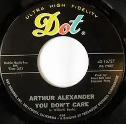 "You Don't Care" is a song written by Herb Ryals and Jerry Willis. It was released as a single by Arthur Alexander in 1965 as the B-side to "Detroit City."