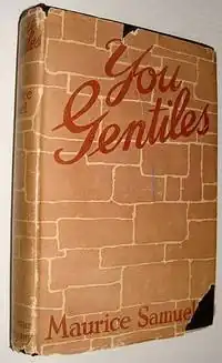 You Gentiles is a 1924 book written by Romanian-born British and American-Jewish author Maurice Samuel. It discusses points of difference in behavior between Jews and Gentiles focusing on physical activity, religion, concepts of good and evil, loyalty, science, fair play, and discipline.