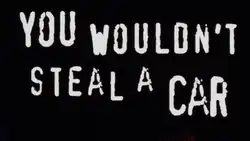 "You Wouldn't Steal a Car" is the first sentence and commonly used name of a public service announcement that debuted on July 12, 2004 in cinemas,[2] and July 27 on home media, which was part of the anti-copyright infringement campaign "Piracy. It's a crime." It was a co-production between the Federation Against Copyright Theft and the Motion Picture Association of America (now the MPA) in cooperation with the Intellectual Property Office of Singapore,[3][4] and appeared in theaters internationally from 2004 until 2008, and on many commercial DVDs during the same period as an ad preceding the main menu, as either an unskippable or skippable video.