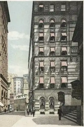 Young's Hotel (1860–1927) in Boston, Massachusetts, was located on Court Street in the Financial District,[1] in a building designed by William Washburn. George Young established the business, later taken over by Joseph Reed Whipple and George G. Hall.[2] Guests at Young's included Mark Twain, Elizabeth Cady Stanton, William Lloyd Garrison, Charles Sumner, Rutherford B. Hayes, and numerous others.