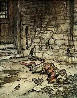 The motif of a hero magically made to forget his love and remembering her on her appearance is common; it may even have been dropped from "Young Beichan", as the hero always returns to the heroine with a promptness of an enchantment breaking.[4] This motif is known as The Forgotten Fiancée and appears as a final episode of tales classified in the Aarne-Thompson-Uther Index as type ATU 313, "The Magic Flight: Girl helps the hero flee".[5] Other folktales with this motif include "Jean, the Soldier, and Eulalie, the Devil's Daughter" (France); "The Two Kings' Children", "The True Bride" and "Sweetheart Roland" (Germany); "The Master Maid" (Norway), "Anthousa, Xanthousa, Chrisomalousa" (Greece) and "Snow-White-Fire-Red" (Sicily).